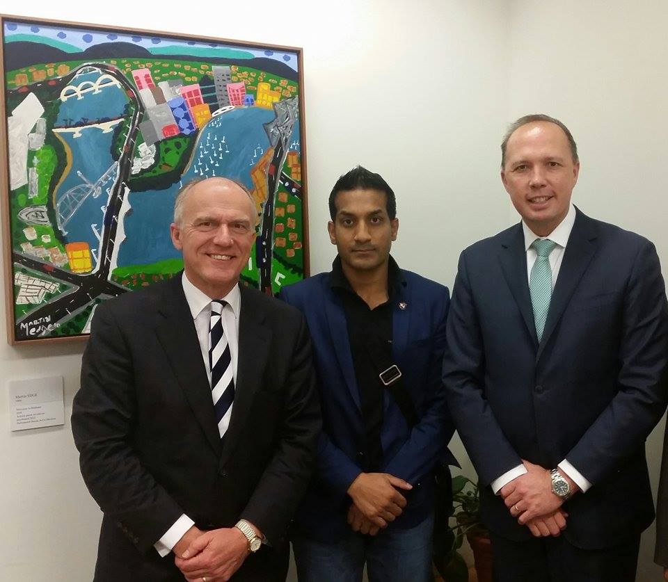 Senator Eric Abetz, Wilson Chowdhry and Minister for Immigration Peter Dutton