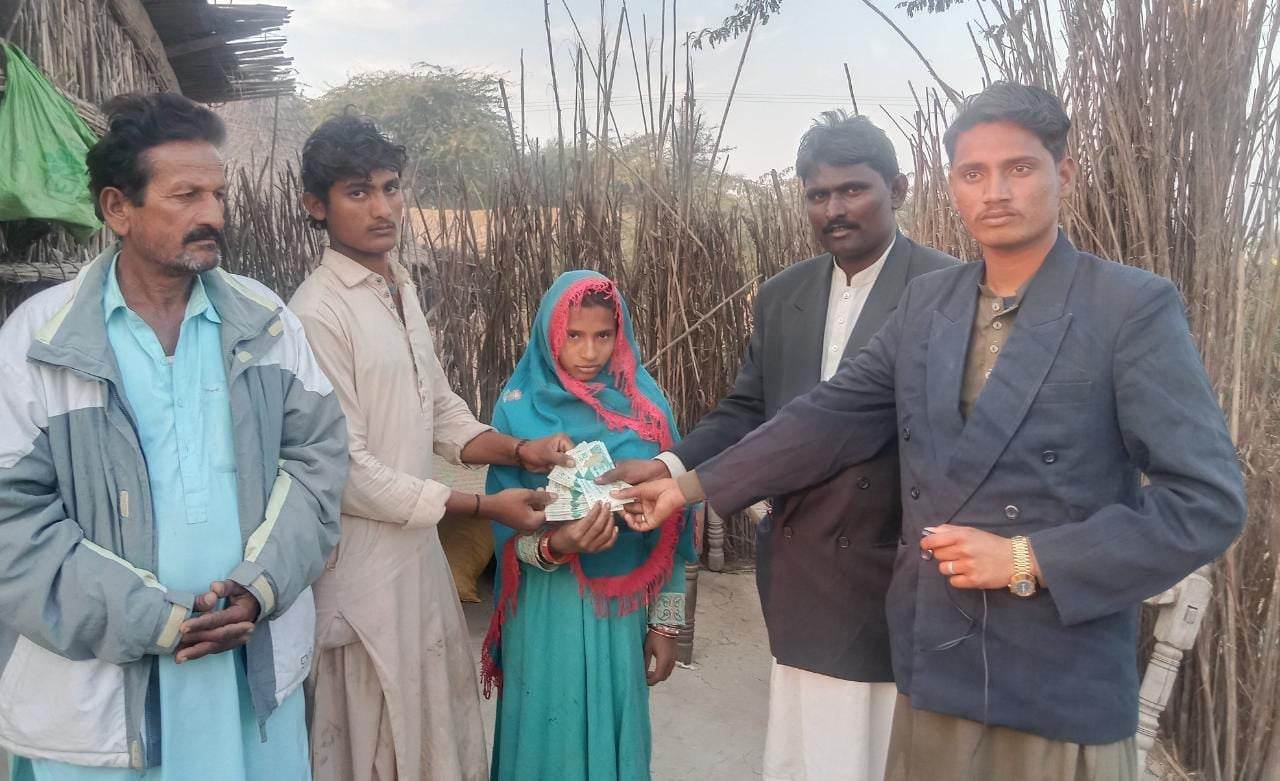 IMAGE: L-R Bhamro (Diya’s brother-in-law), Somar (Diya’s son) Meena (Diya’s youngest daughter). Evangelist Sagar Masih (BACA volunteer) and Evangelist Danyal Masih (BACA Volunteer). British Asian Christian Association gave the gift of £100 to young Meena, the family have not asked for further support as they will be compensated by Government.