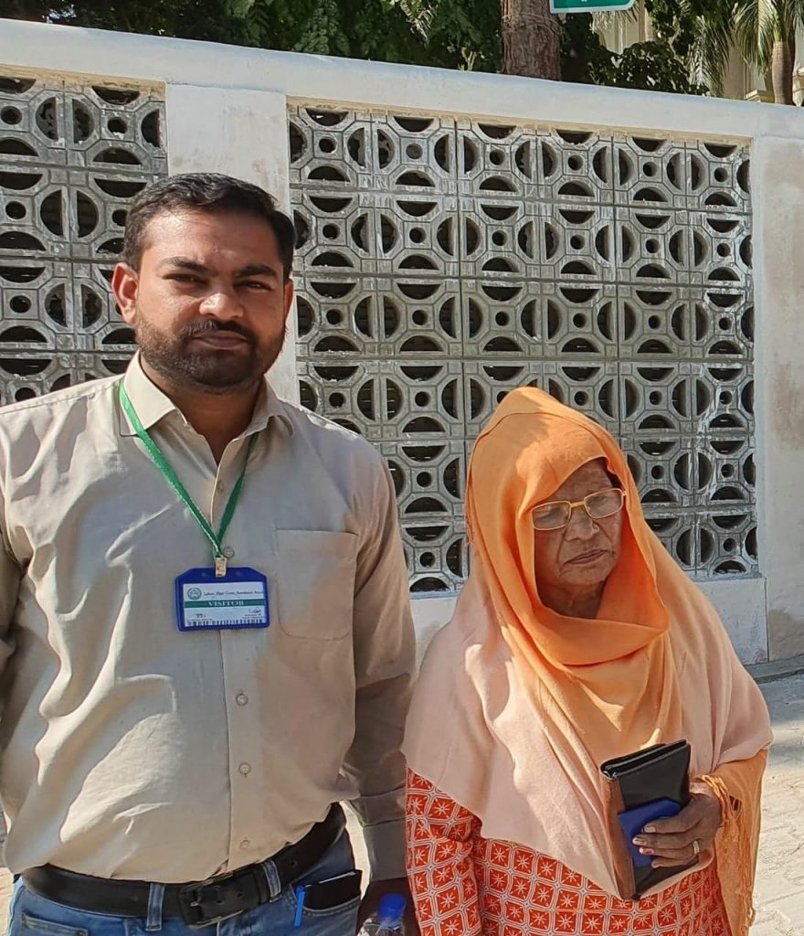 Image of Nawab Bibi after Rawalpindi court hearing on 8th February.