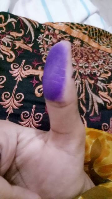 Ink stains the thumb of a Pakistani voter – voting by thumb print is a system that allows corruption .