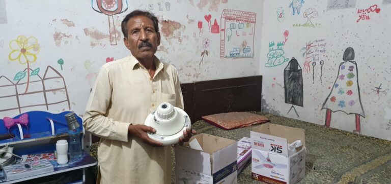 On 17th April, just days before Easter, our team returned to their home with great news. Two fans were installed to bring much-needed relief from the blistering heat. Mukhtar Masih, their 60-year-old maternal grandfather and legal guardian, expressed deep gratitude for the timely installation, saying: