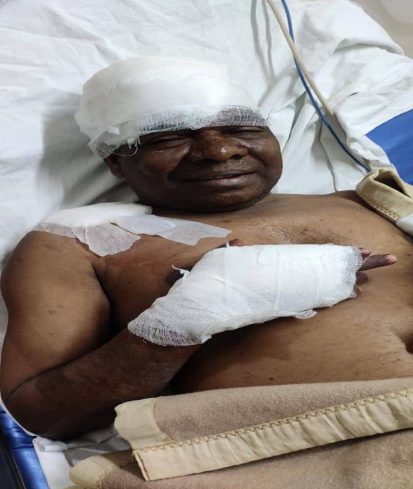 From the images provided Pastor Narendra has severe wounds to his hands and head but will survive the attempted murder because he bravely fought back against the attacker.