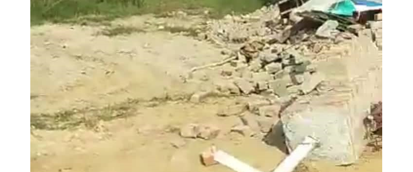 A JCB vehicle was brought to the church and was used to demolish the church boundary wall and building. The main hall and washroom facility were flattened, and a water cooler and the church sound system were broken beyond repair.