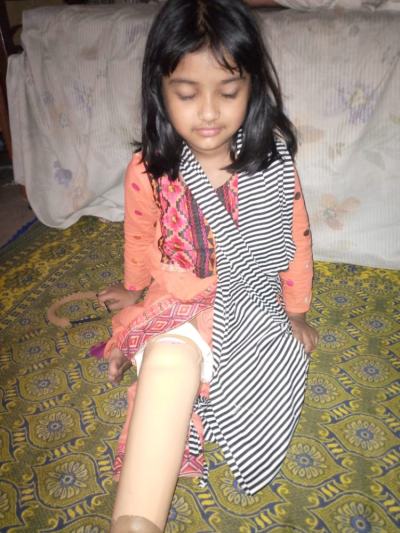Aleeza’s father has recently called our operations manager and has informed him that Aleeza urgently needs a new leg because the previous prosthetic leg hurts now when she walks.