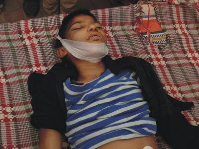 Wounds cover her face, head and neck!