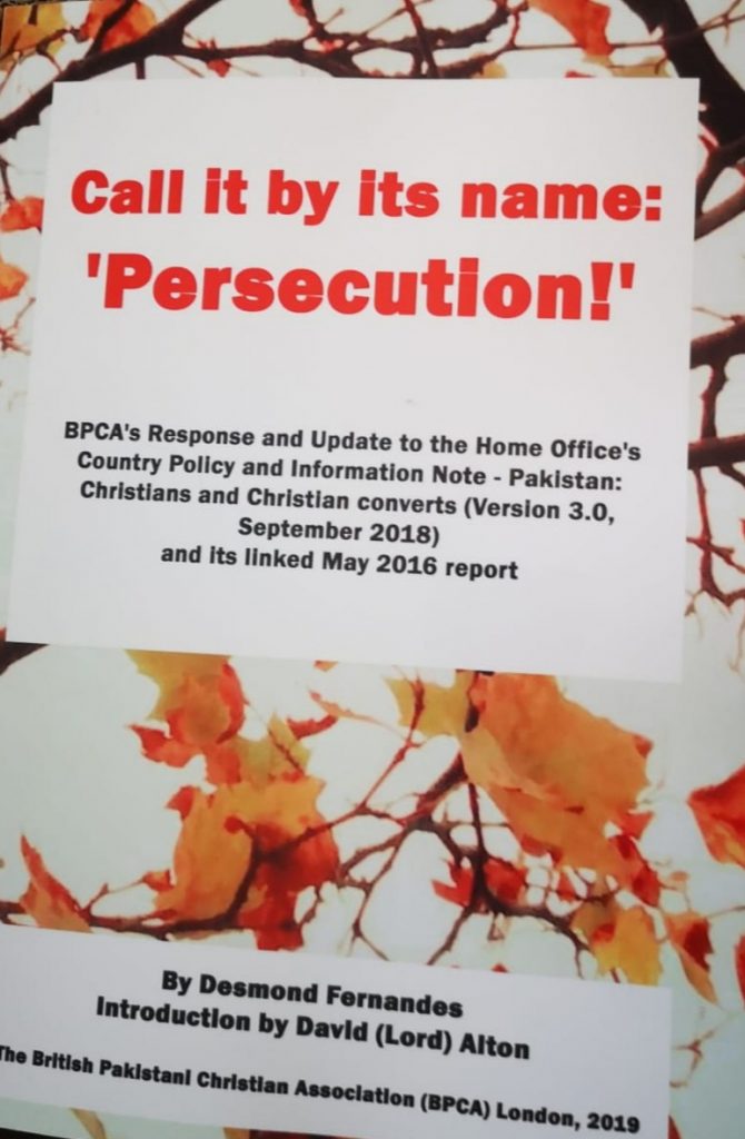 The British Asian Christian Association (formerly the British Pakistani Christian Association) has sent all UK Members of Parliament a copy of our most recent book, Call it by its name: ‘Persecution!’ The book comprehensively analyses and documents the manner in which Christians have been – and continue to be – persecuted throughout Pakistan. Exactly a year ago, the Supreme Court of Pakistan re-confirmed its decision to acquit Asia Bibi of the false charge of blasphemy. Whilst Asia Bibi no longer faces persecution, the plight of Christians still living in Pakistan remains precarious, as the findings of our recent book