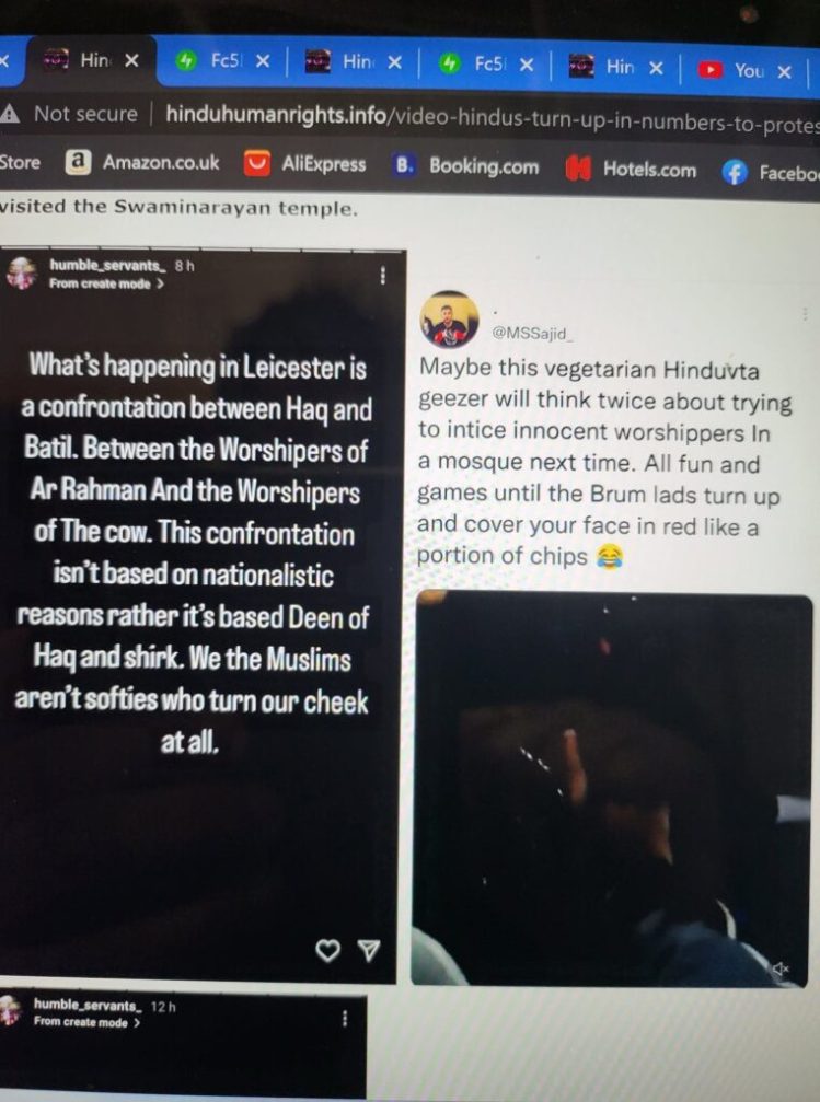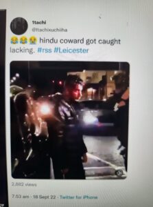 “Far-right Islamists for over a week on social media have been making threats of violence and rape against Hindus and have been asking other Islamists to join them to come down to #Leicester today to start their witch hunt of ‘Pagan Kafir’ Hindus.