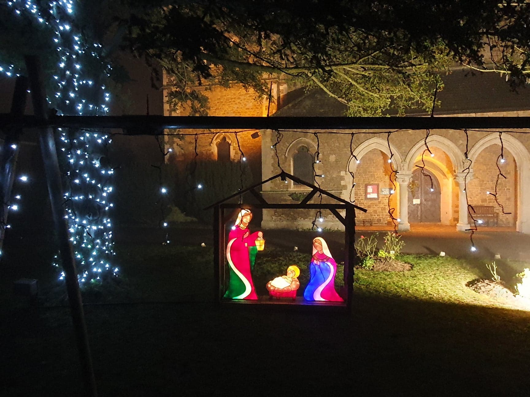 IMAGE: Some of the lights and Nativity at All Saints Church.