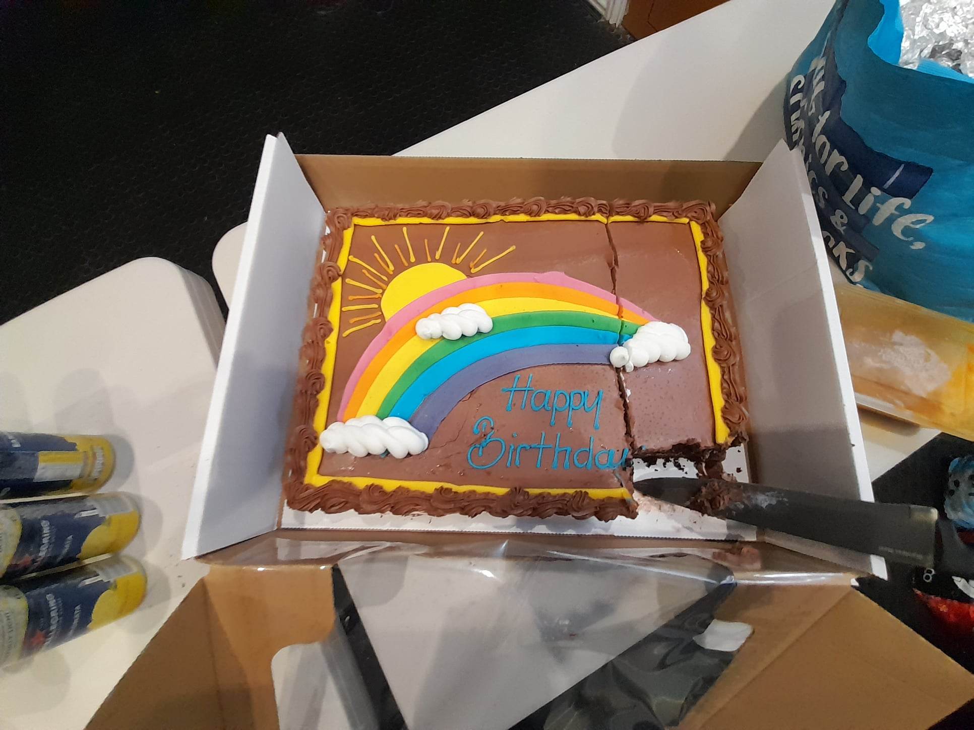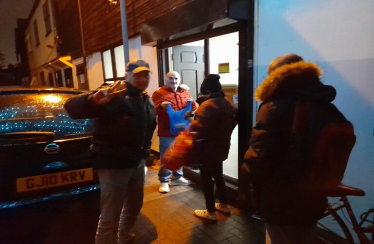 Homeless people that gather in Ilford for our hot meal and foodbank distribution were served a chocolatey treat, after one of our volunteers Naomi Chowdhry, turned up with a birthday cake for them.