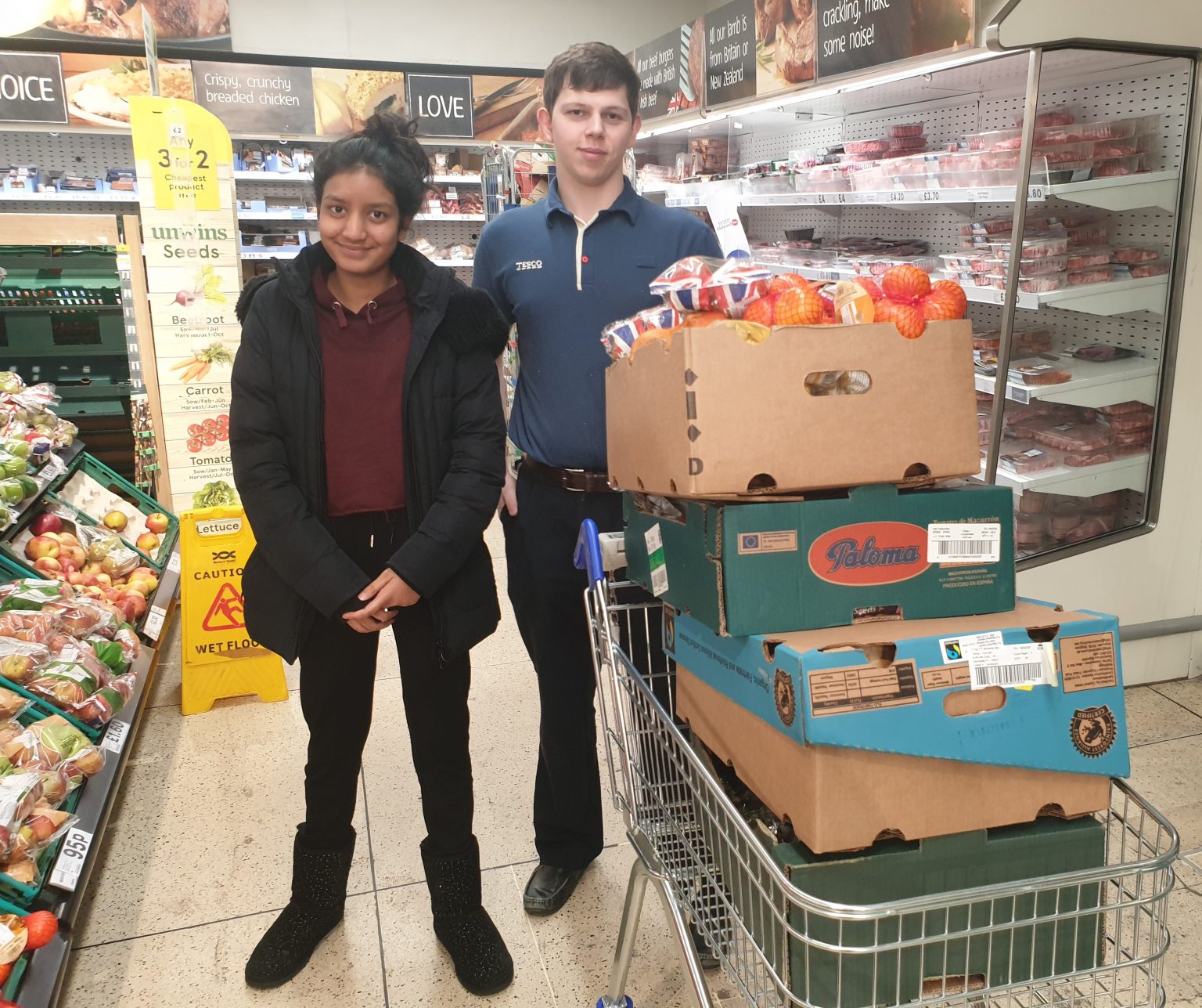 Hannah at a collection of food at Collier Row Tesco Metro