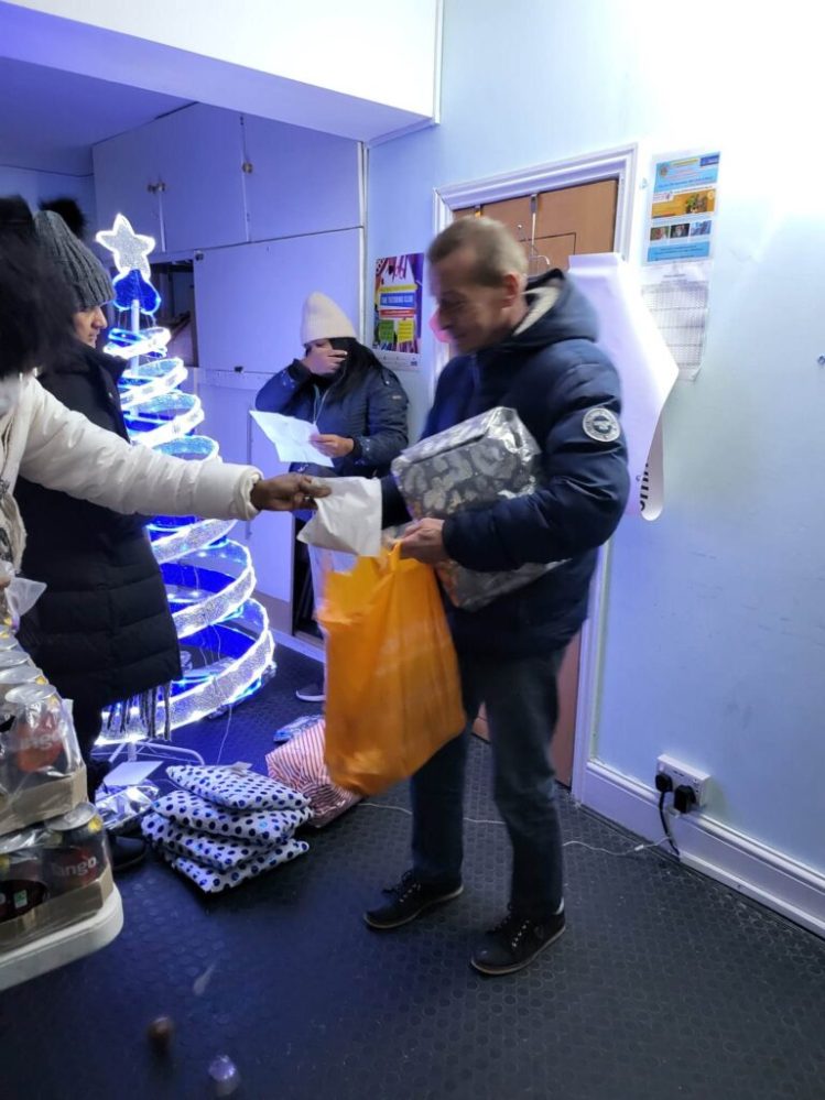 Food and parcels for everyone our volunteers even made sure we had spare gifts for those who did not attend in the weeks before and name the clothing gift they wanted.