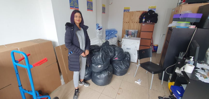 Image of trustee Juliet delivering bags of reusable items to our local cargo services provider.