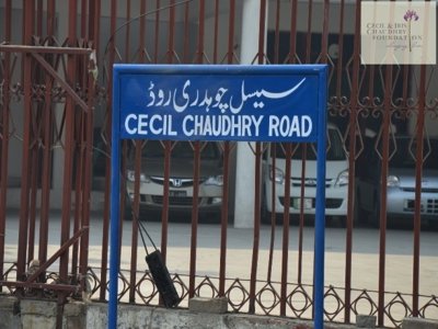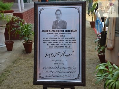 A documentary prepared by the Pakistan Air Force honoring the life of Cecil Chaudhry was screened; which created an extremely emotional atmosphere. Then later a plaque was unveiled by the Chief Guest which was later fixed at a prominent location of the road..