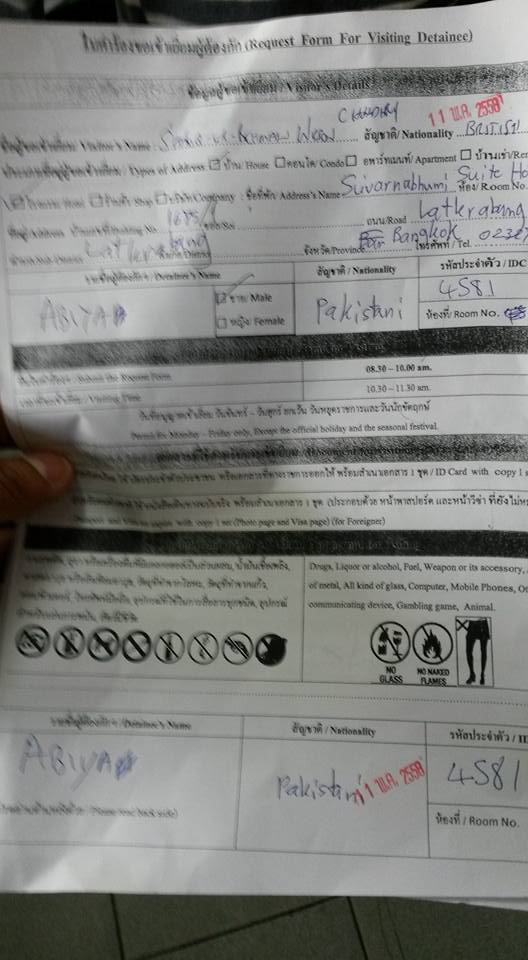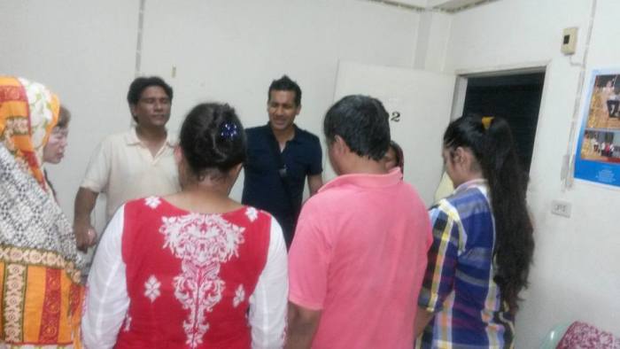 Wilson also learned more about the precarious situation of Pakistani Christian asylum seekers in Thailand.  The government is getting tired of the huge numbers of refugees, so there is an ongoing police crackdown on ‘illegal immigrants’ such as these Pakistani Christians.  Thailand, as we reported in an earlier article, has not signed up to the UNHCR convention over refugees and Wilson saw the evidence of the police raids including kicked in doors.  This has left the Christians absolutely terrified – they are even sometimes afraid to go out and buy food when they can afford it.  They can’t afford to replace the locks, and, fearful of further raids, they get friends to padlock them in from the outside to give the appearance of  being empty, but given the likelihood of fire in these rough, slum-like buildings, they run the grave danger of being trapped and burnt alive.  In these waves of arrests over 400 Pakistani Christians were incarcerated.  If they are taken to an Immigration Detention Centre (IDC) then, if these impoverished Christians can pay 50,000 baht, about £1000, they can go free and then have a two year pardon period during which they won’t be rearrested.  The conditions in the IDC are horrific with 150 locked into rooms meant for 100 with just one toilet between them.  They can only sleep either standing up, or crouching down.  There are still 21 Pakistani Christians in IDC, with a cost of over £20,000 to get them all out.  They are forced to wear orange uniforms, and their daily ration is a small amount of rice, and cucumber soup (boiled cucumber in plain water).  Papa Thongchai reports that they go in relatively healthy and come out having visibly lost significant amounts of weight and looking malnourished.  The stench is horrific and Wilson almost cried when he visited detainees.  They are not allowed out unless they are invited out by visitors, so when Wilson and the others visited, the detainees were overjoyed, but their smiles hid the desperation behind them.  This is a real humanitarian crisis, and although it was not much, due to our thin resources, each Pakistani Christian was given 100 baht and some food.  Wilson said the pain was so great, he wondered which were better off, those who die on the journey, or those who made it here. Much focus has been put on the dangerous nature of the travel from countries with persecution by mainstream media – yet they have failed to grasp the horrors that face those who survive the journey.
