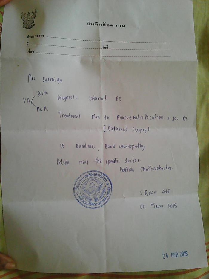 20,000 baht equates to £400 we are desperately seeking from donors to help this vulnerable mother.